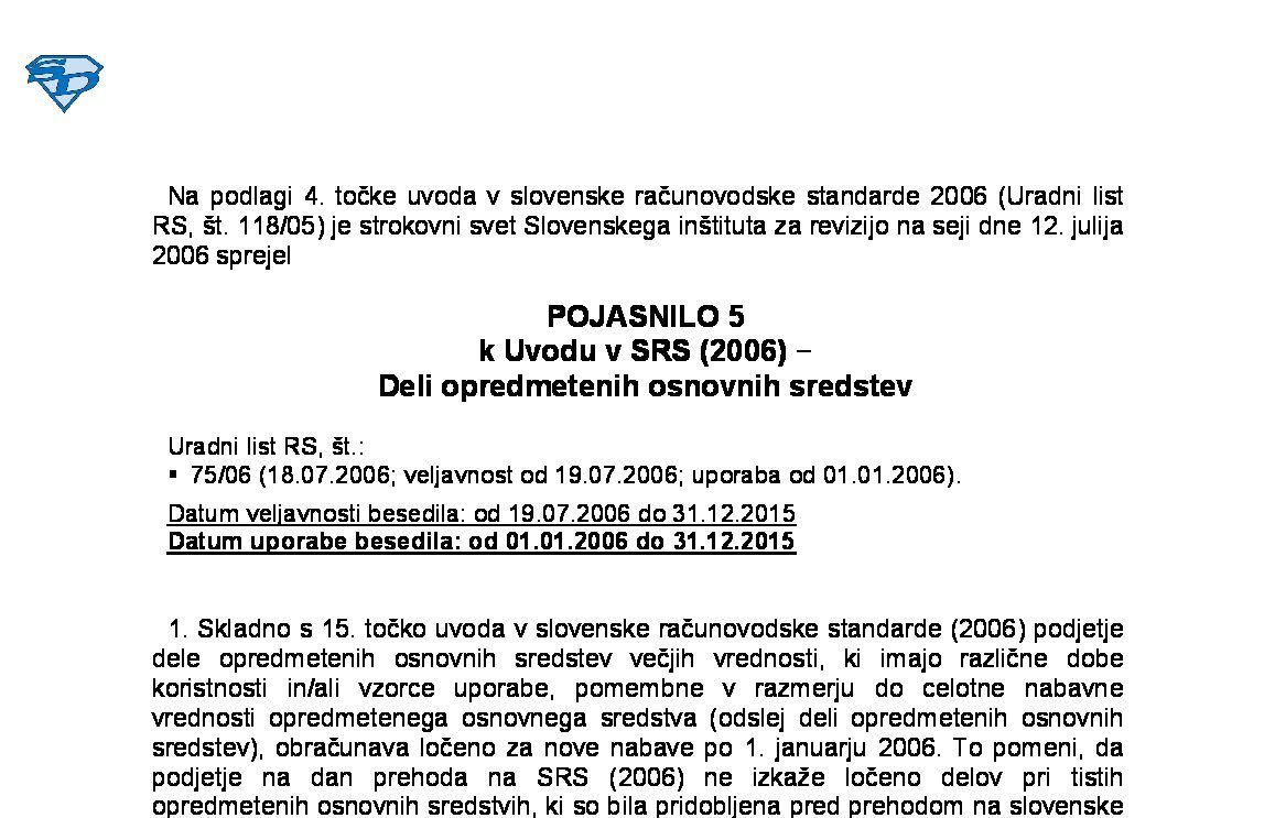 Pojasnilo se začne uporabljati pri sestavitvi letnega poročila za poslovno leto, ki se začne 1. januarja 2006 ali kasneje.