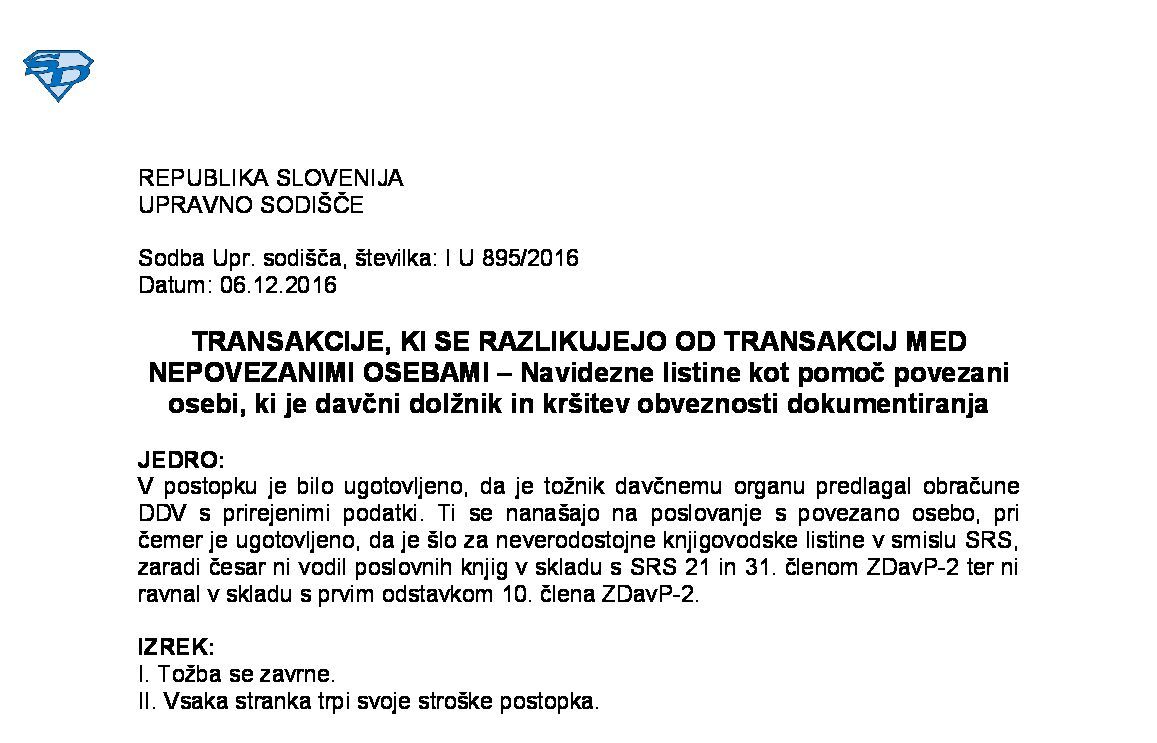 DIN IN IZDAJA POTRJENEGA RAČUNA – Ugotovitvena odločba – Pomanjkljiv izrek odločbe (I U 11/2023-13) 06.01.2025 11.07.2025