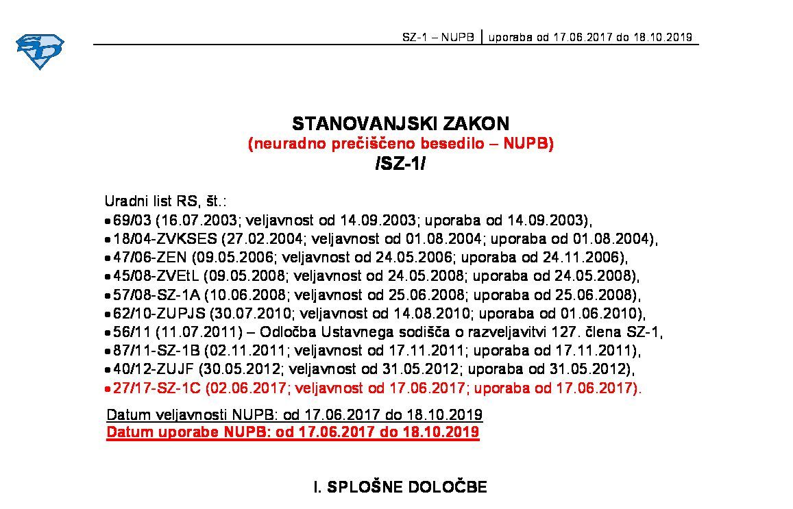 STANOVANJSKI ZAKON (SZ-1 - neuradno prečiščeno besedilo) 01.12.2025 [!] 31.07.2025