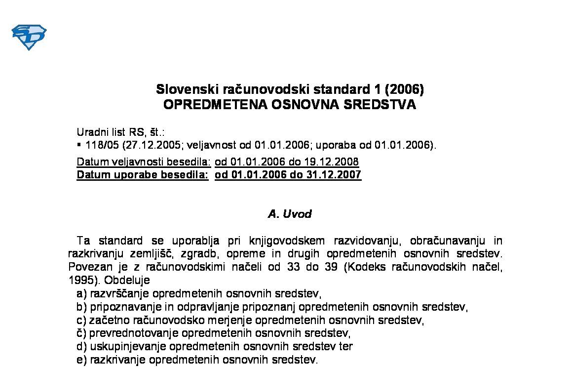 Podjetja, ki imajo poslovno leto enako koledarskemu, začnejo SRS 1 (2006) uporabljati s 1. januarjem 2006, preostala podjetja pa s prvim poslovnim letom, ki se začne po tem datumu. Članek nima prilog!