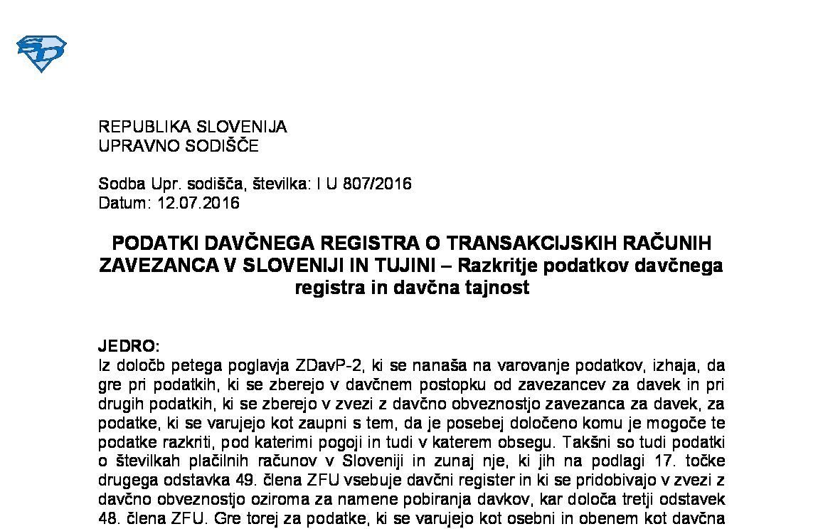 ZASTARANJE PRAVICE DO ODMERE DAVKA – Prekluzija (I U 765/2015) 06.09.2016 16.01.2025