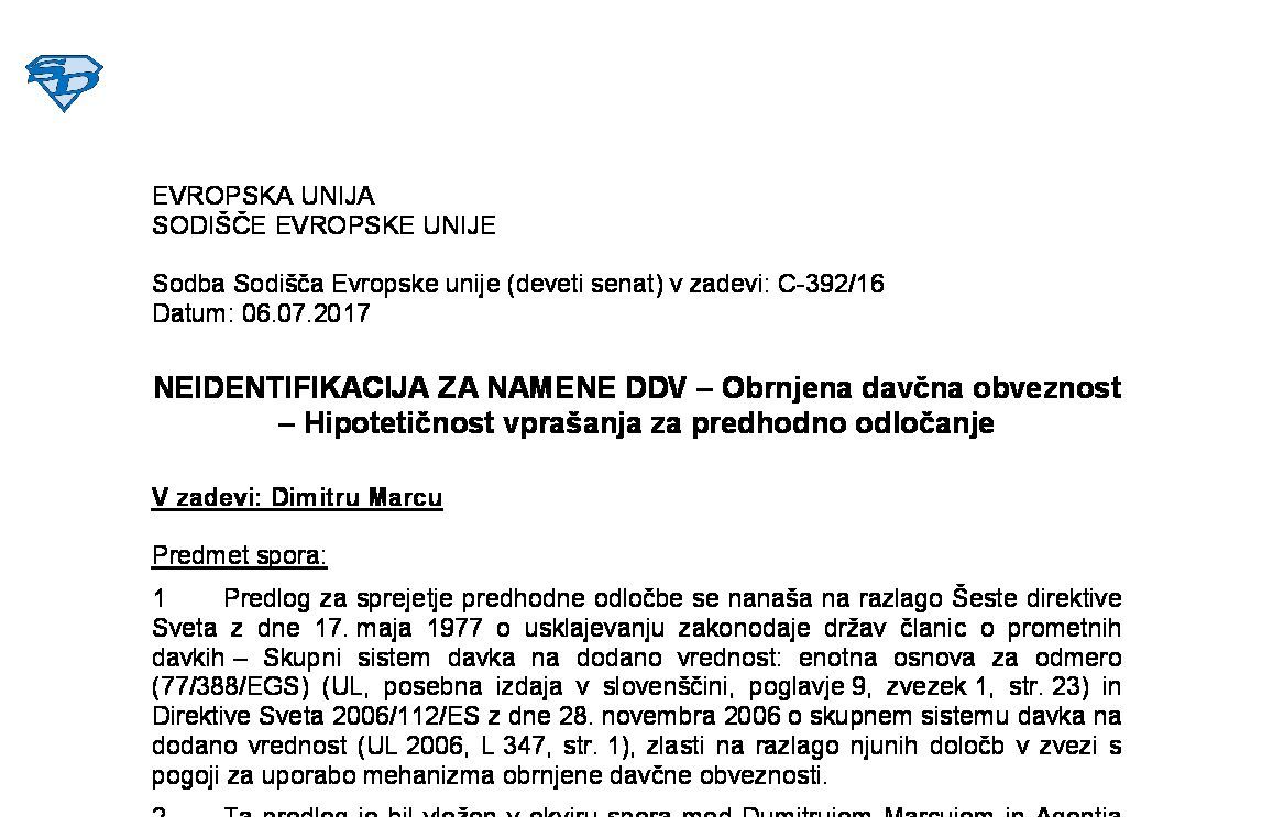 SOLIDARNA ODGOVORNOST – INSOLVENTNOST GLAVNEGA DOLŽNIKA – Ohranitev obveznosti plačila DDV – Solidarna odgovornost tretje osebe po izbrisu glavnega dolžnika iz poslovnega registra (C-121/24) 11.12.2025 12.12.2025