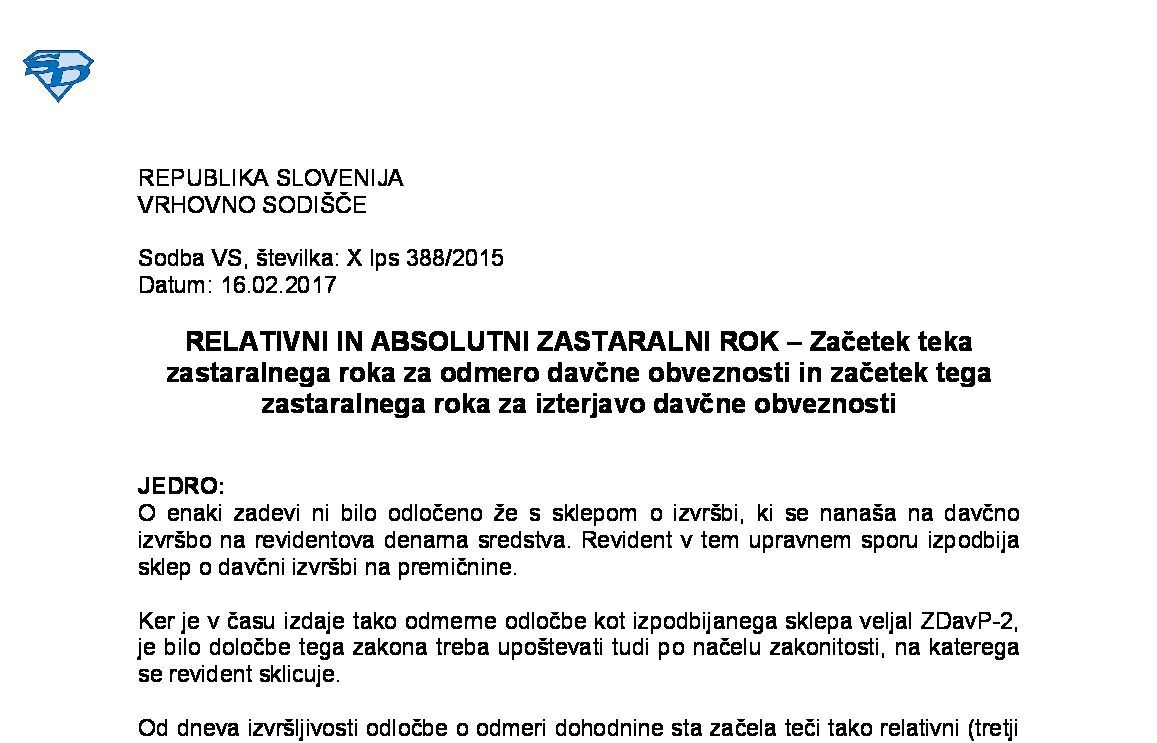 ODLOG UGOTAVLJANJA DAVČNE OBVEZNOSTI – Samoprijava (X Ips 31/2023) 02.10.2024 06.11.2024