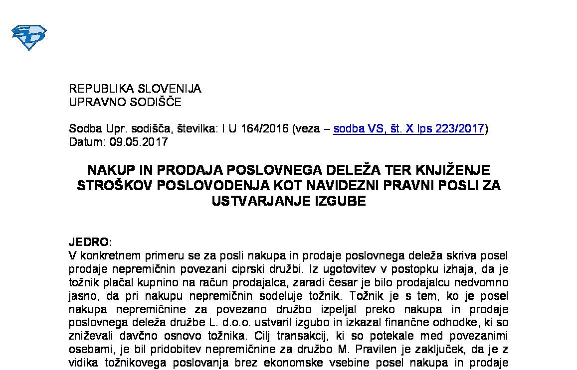 DDPO IN PREKLUZIJA DOKAZOV – Davčno priznan odhodek – Rezervacije – Prikrito izplačilo dobička (I U 652/2021-12) 15.07.2024 30.01.2025