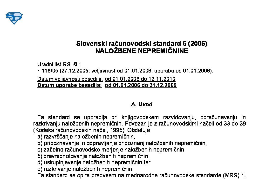 Podjetja, ki imajo poslovno leto enako koledarskemu, začnejo SRS 6 (2006) uporabljati s 1. januarjem 2006, preostala podjetja pa s prvim poslovnim letom, ki se začne po tem datumu. Članek nima prilog!