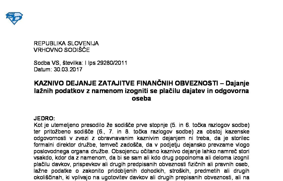 ODLOG UGOTAVLJANJA DAVČNE OBVEZNOSTI – Samoprijava (X Ips 31/2023) 02.10.2024 06.11.2024