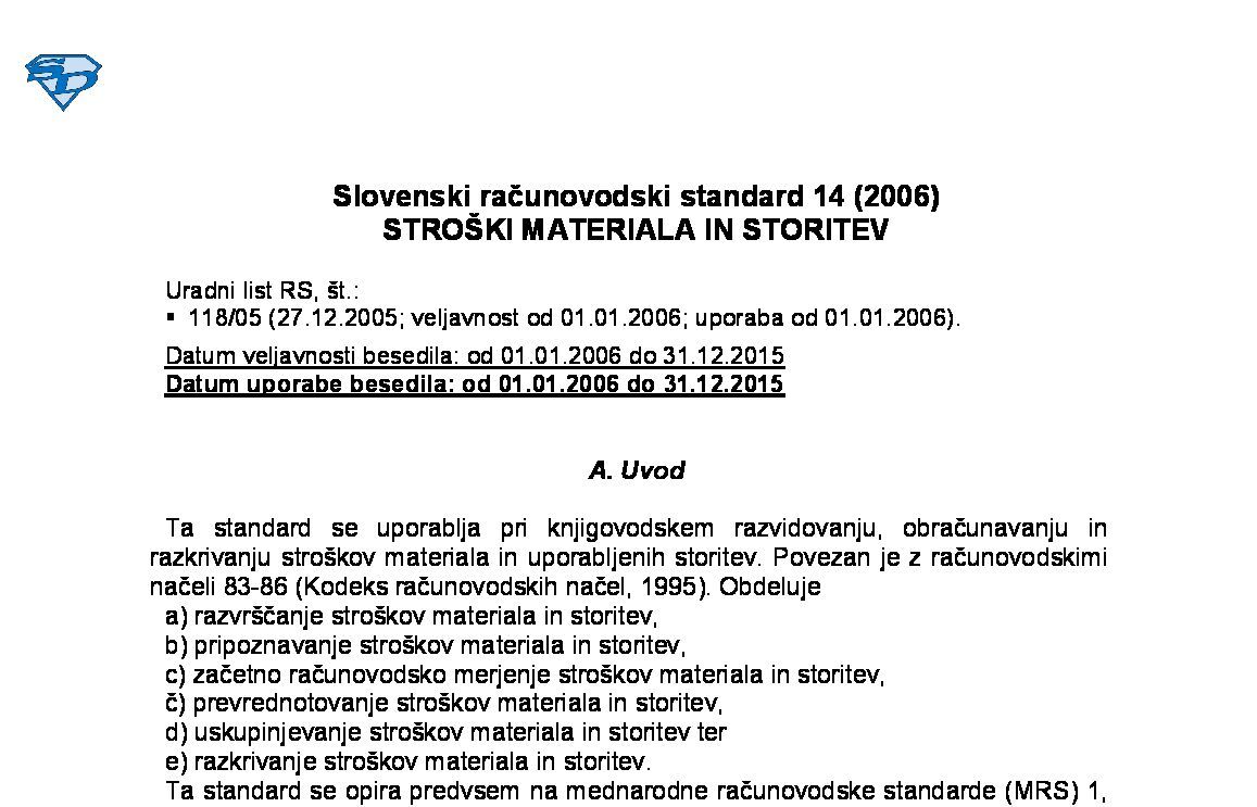 Organizacije z dnem začetka uporabe SRS 12 (2016) prenehajo uporabljati SRS 14 – Stroški materiala in storitev (2006).