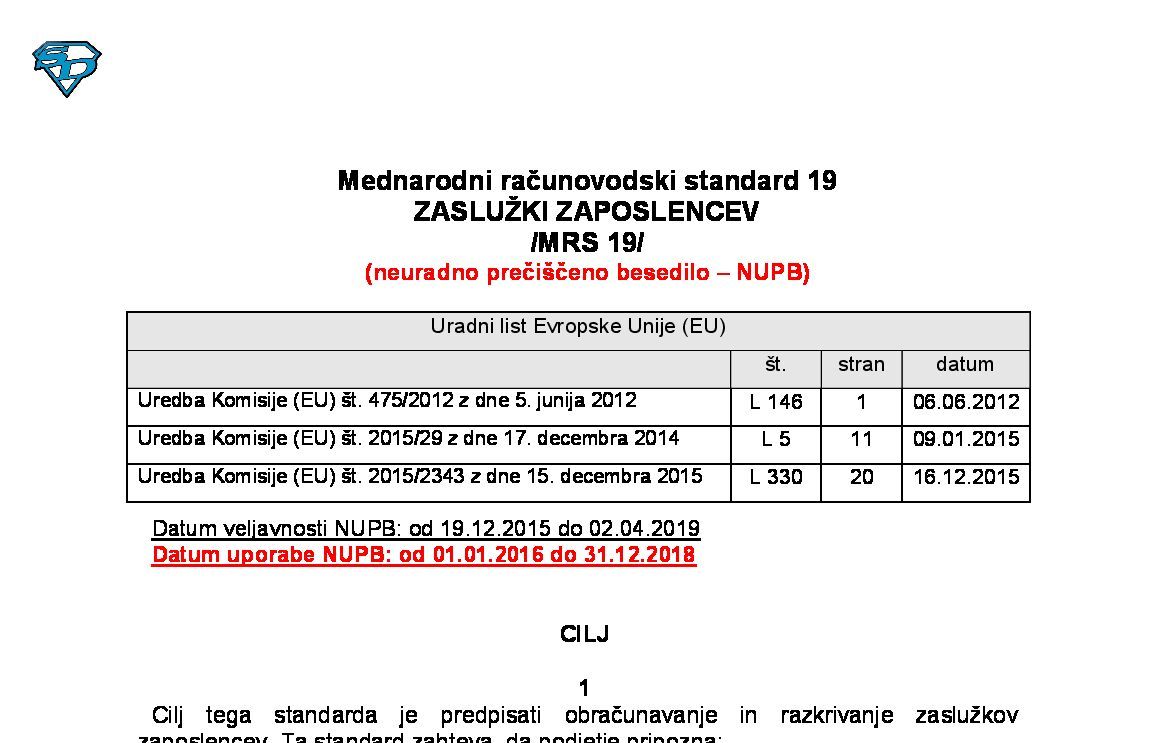 Podjetja začnejo uporabljati NUPB MRS-19 najpozneje z začetkom prvega poslovnega leta, ki se začne 1. januarja 2016 ali pozneje.