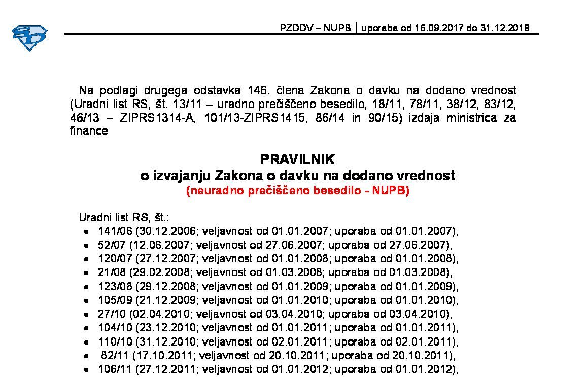 Pravilnik o izvajanju Zakona o davku na dodano vrednost (PZDDV - neuradno prečiščeno besedilo) 01.01.2025 [!] 30.12.2024
