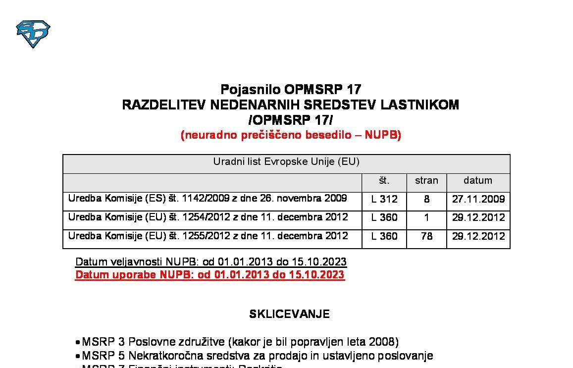 Podjetja začnejo uporabljati NUPB OPMSRP-17 najkasneje z začetkom prvega poslovnega leta, ki se začne 1. januarja 2013 ali kasneje.