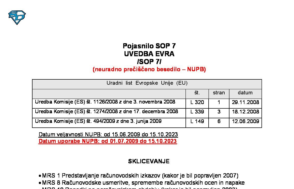 Posamezna družba začne uporabljati NUPB SOP-07 najpozneje z datumom začetka svojega prvega finančnega leta, ki se začne po 30. juniju 2009.