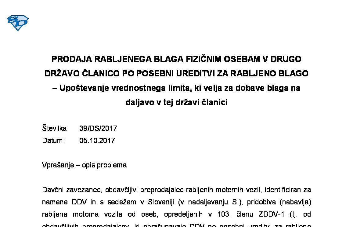 PRIDOBITEV IDENTIFIKACIJSKE ŠTEVILKE ZA DDV PRI MALEM DAVČNEM ZAVEZANCU – NAKUPI RABLJENEGA BLAGA OD OBDAVČLJIVIH PREPRODAJALCEV IZ DRUGIH DRŽAV ČLANIC EU – Ali preseganje nakupov v vrednosti 10.000 EUR pomeni obveznost za identifikacijo za DDV? 27.11.2025 27.11.2025