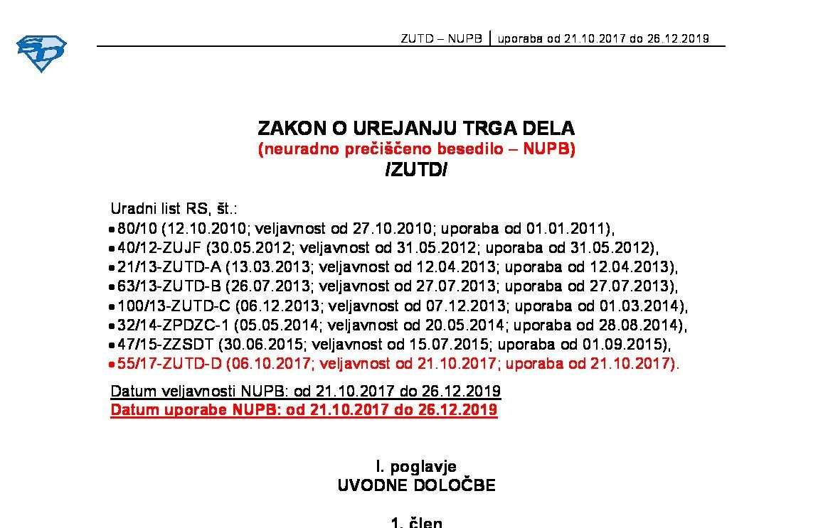 | ZAKON O UREJANJU TRGA DELA (ZUTD - neuradno prečiščeno besedilo) | 29.10.2025 | [!] | 29.10.2025 | |