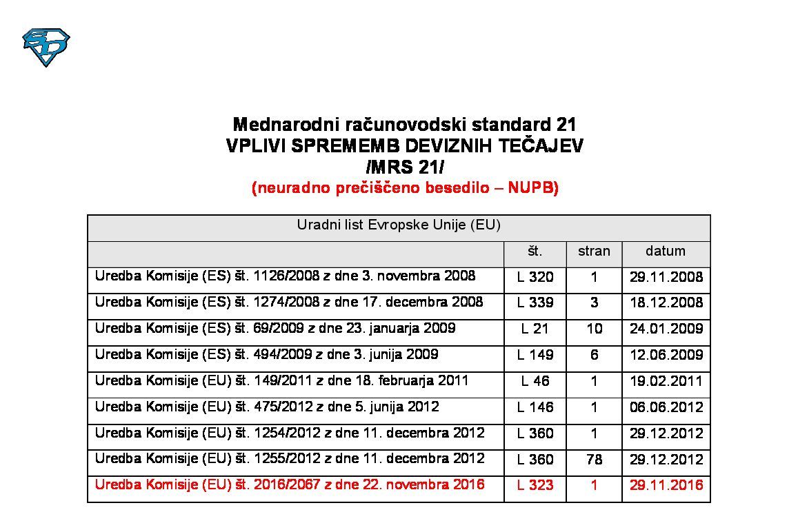 21. MRS 21 - Vplivi sprememb menjalnih tečajev (NUPB - neuradno prečiščeno besedilo) 01.01.2025 [!] 20.11.2024