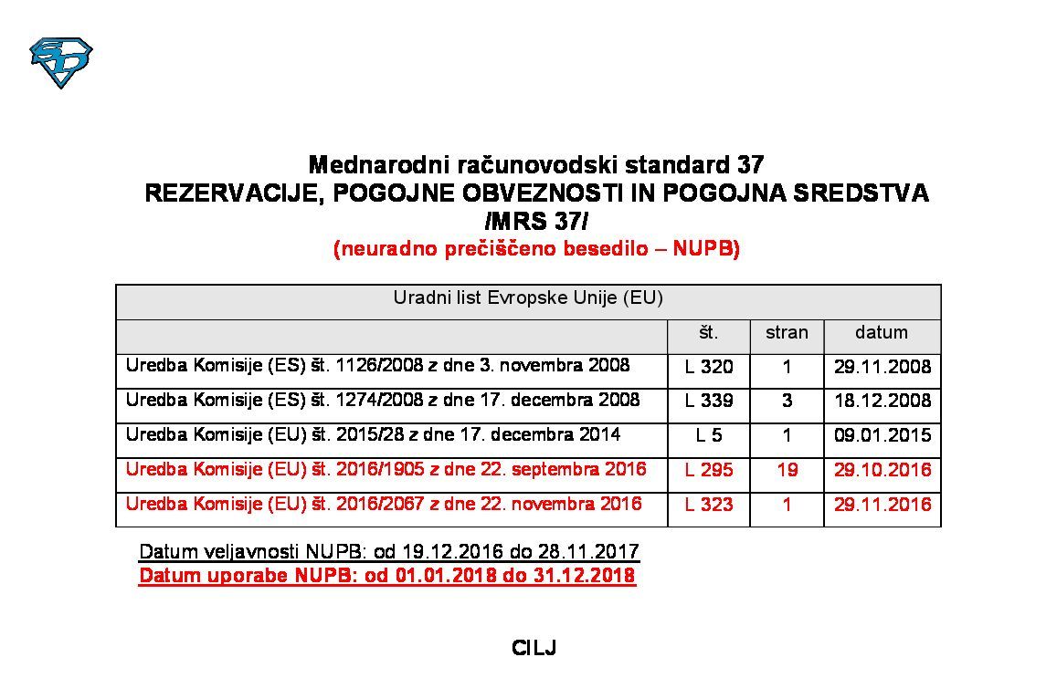 Podjetja začnejo uporabljati NUPB MRS-37 najpozneje z začetkom prvega poslovnega leta, ki se začne 1. januarja 2018 ali po tem datumu.