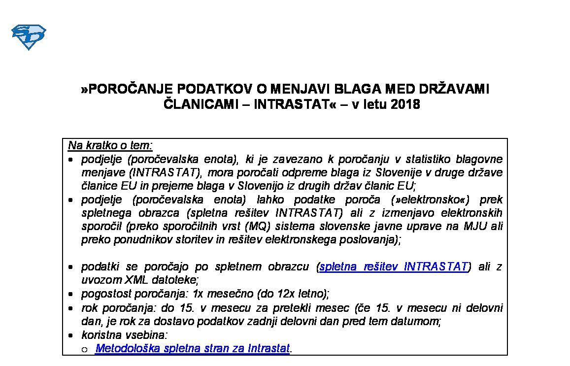 POROČANJE PODATKOV O MENJAVI BLAGA MED DRŽAVAMI ČLANICAMI - INTRASTAT - V letu 2025 22.01.2025