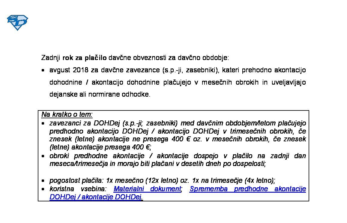 Sprememba predhodne AkDoh / AkDoh od dohodka iz dejavnosti za leto 2026 (obračun DOHDej) med davčnim letom 2026-08-03 00:00:00