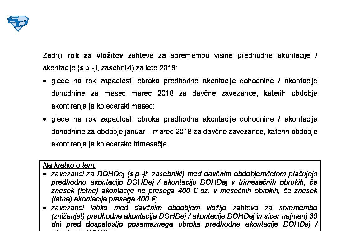 Sprememba predhodne AkDoh / AkDoh od dohodka iz dejavnosti za leto 2026 (obračun DOHDej) med davčnim letom 2026-08-03 00:00:00