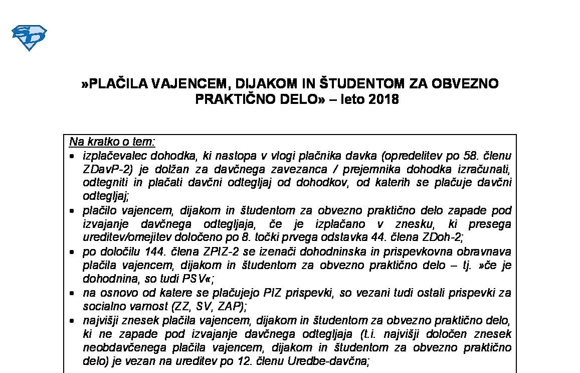 PLAČILO VAJENCEM, DIJAKOM IN ŠTUDENTOM ZA OBVEZNO PRAKTIČNO DELO - leto 2024 20.03.2024