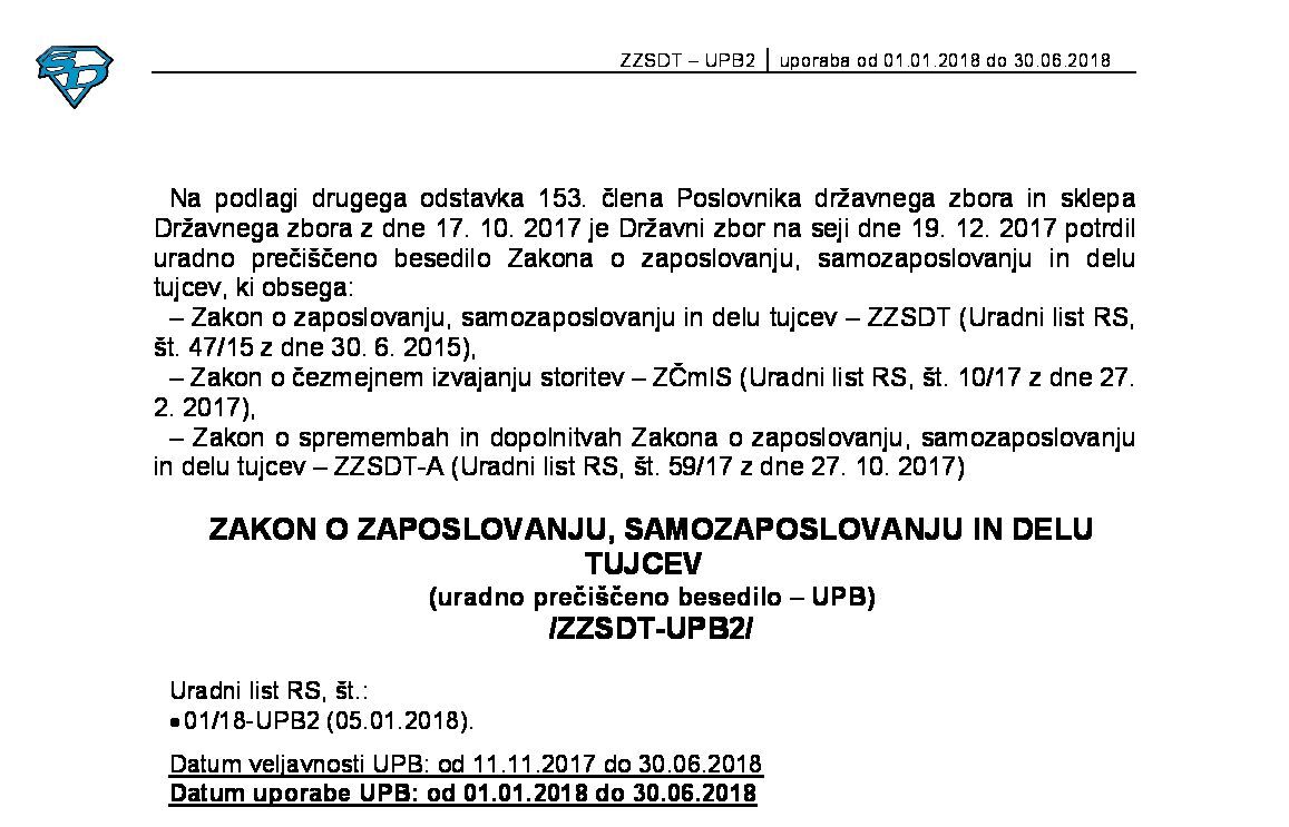ZAKON O UREJANJU TRGA DELA (ZUTD - neuradno prečiščeno besedilo) 29.10.2025 [!] 29.10.2025