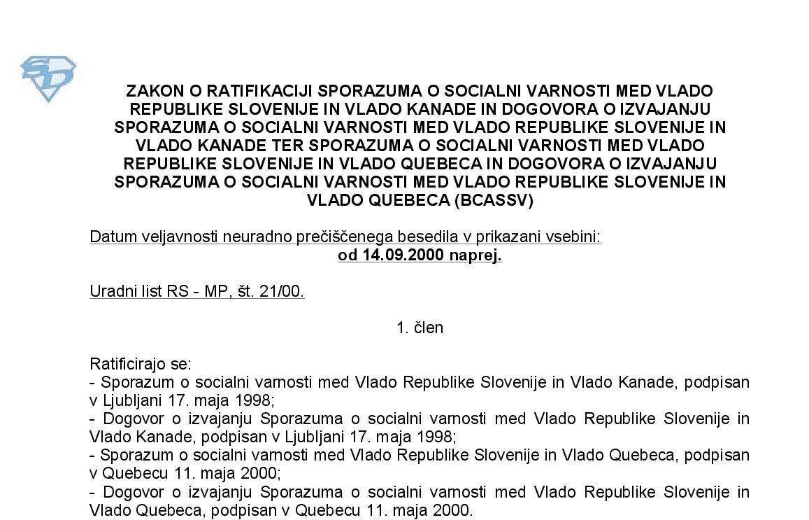 MAKEDONIJA - Sporazum o socialnem zavarovanju med Republiko Slovenijo in Republiko Makedonijo (BMKSZ - neuradno prečiščeno besedilo) 15.02.2019 [!] 27.03.2019