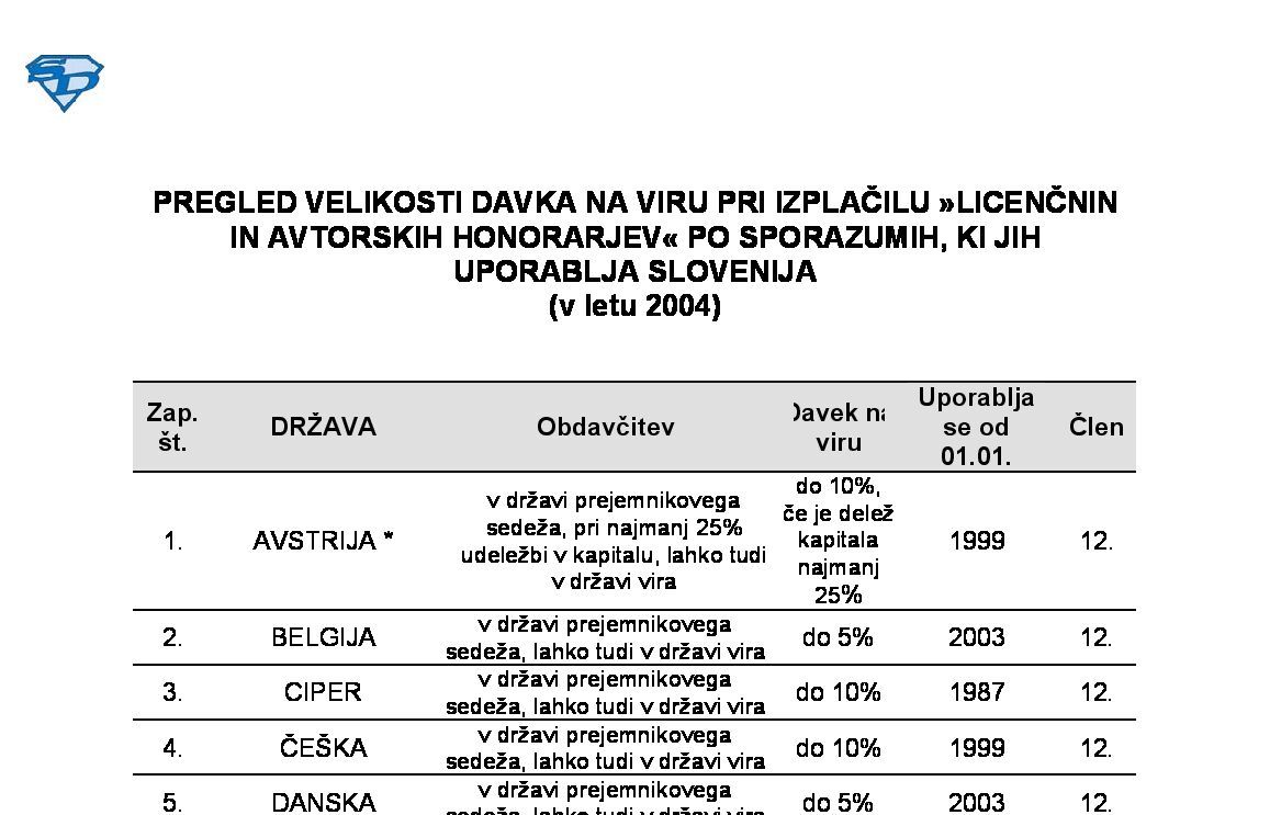 Sporazumi oziroma konvencije (pogodbe) o izogibanju dvojnega obdavčenja dohodka in premoženja, KI SE UPORABLJAJO V REPUBLIKI SLOVENIJI - v letu 2025 10.01.2025