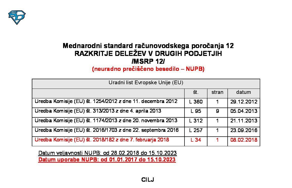 Podjetja začnejo uporabljati NUPB MSRP-12 z začetkom prvega poslovnega leta, ki se začne 1. januarja 2017 ali po tem datumu.