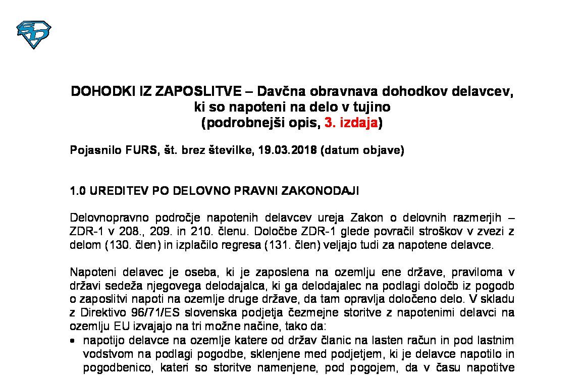 DOHODKI IZ ZAPOSLITVE – Davčna obravnava dohodkov delavcev, ki so napoteni na delo v tujino (podrobnejši opis, 14. izdaja) 14.01.2026