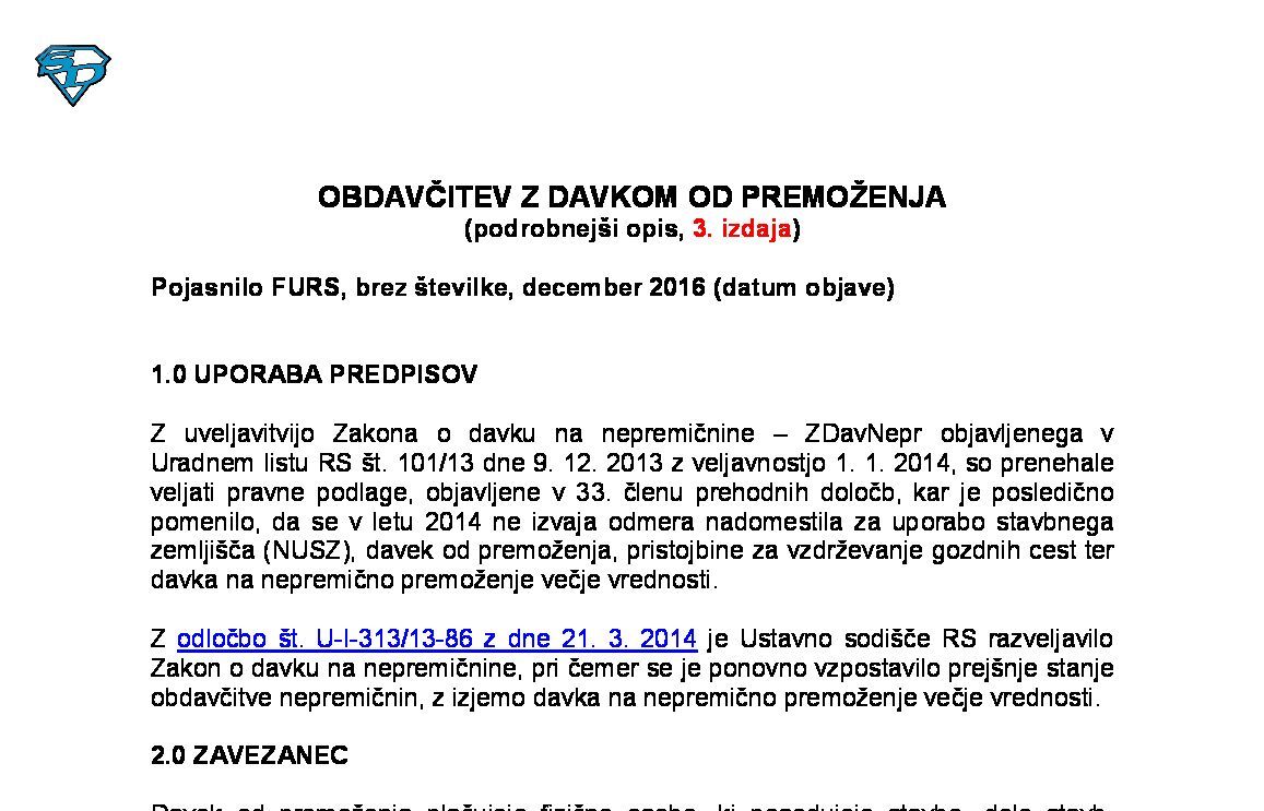 OBDAVČITEV Z DAVKOM OD PREMOŽENJA (podrobnejši opis ter vprašanja in odgovori, 12. izdaja) 29.12.2025 16.01.2026
