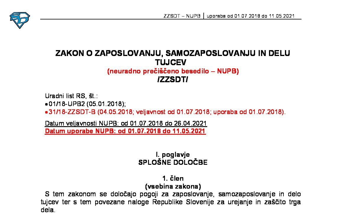 ZAKON O UREJANJU TRGA DELA (ZUTD - neuradno prečiščeno besedilo) 29.10.2025 [!] 29.10.2025