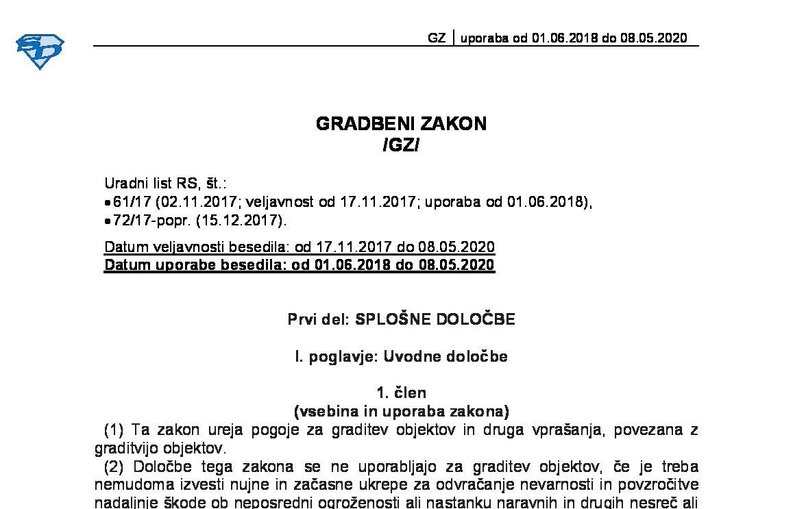 GRADBENI ZAKON (GZ-1 - neuradno prečiščeno besedilo) 15.10.2025 [!] 01.10.2025