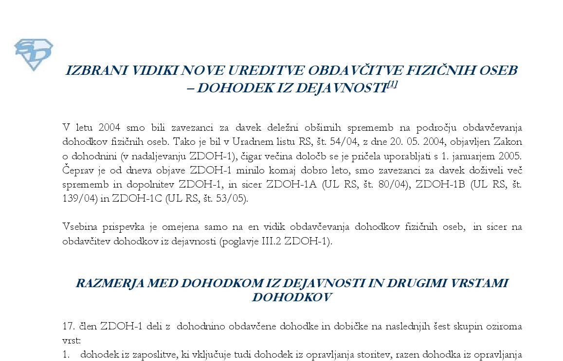DELNA REFORMA REFORMIRANE DAVČNE ZAKONODAJE, številka 07-05 29.09.2005