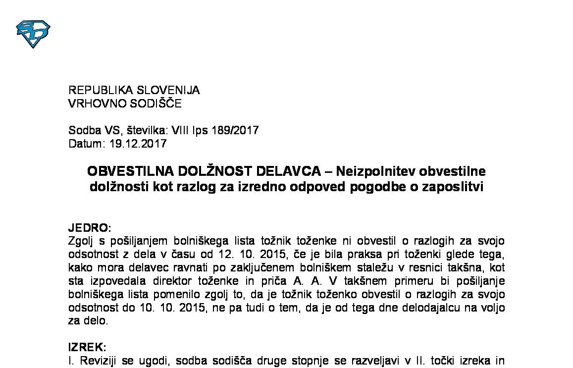 PRAVNOMOČNA SODBA IN OBSTOJ DELOVNEGA RAZMERJA – Podlaga in obseg zavarovanja (VIII Ips 26/2024) 11.04.2025 26.05.2025