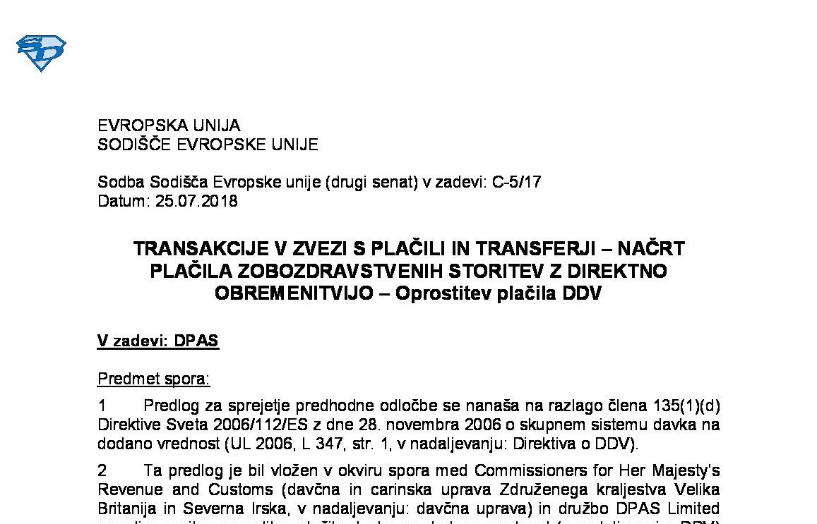 OPROSTITEV V ZVEZI Z DAJANJEM KREDITOV – OPROSTITEV V ZVEZI S FINANČNIMI TRANSAKCIJAMI – IZTERJAVA DOLGOV – Faktoring s prodajo terjatev – Faktoring z zastavno pravico (C-232/24) 23.10.2025 28.10.2025