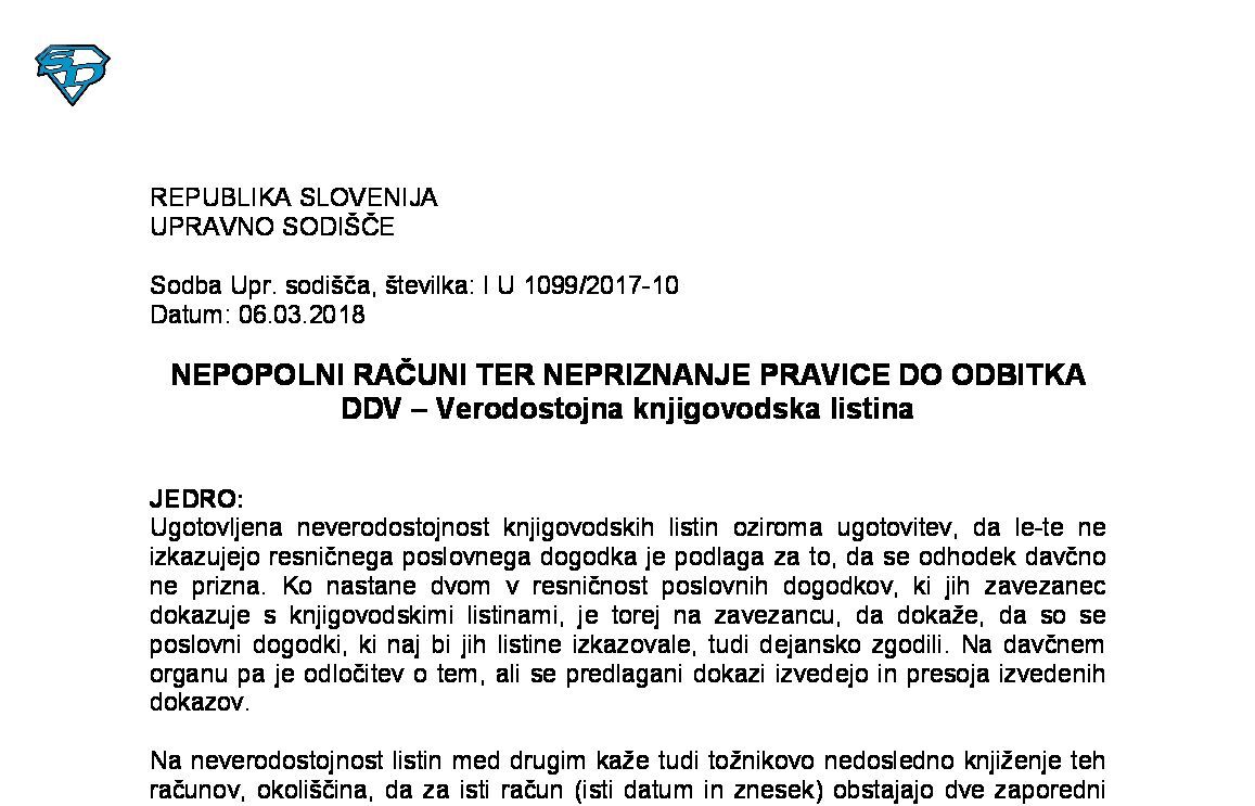 IZPOLNJEVANJE POGOJEV ZA DOBAVO BLAGA ZNOTRAJ UNIJE, OPROŠČENO PLAČILA DDV NA PODLAGI 46. ČLENA ZDDV-1 – Nepopolne CMR listine (I U 1704/2021-38) 27.11.2024 15.10.2025