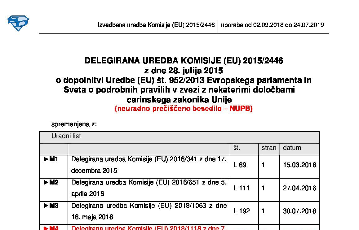 DELEGIRANA UREDBA KOMISIJE (EU) 2015/2446 z dne 28. julija 2015 o dopolnitvi Uredbe (EU) št. 952/2013 Evropskega parlamenta in Sveta o podrobnih pravilih v zvezi z nekaterimi določbami carinskega zakonika Unije 01.12.2027 16.04.2024