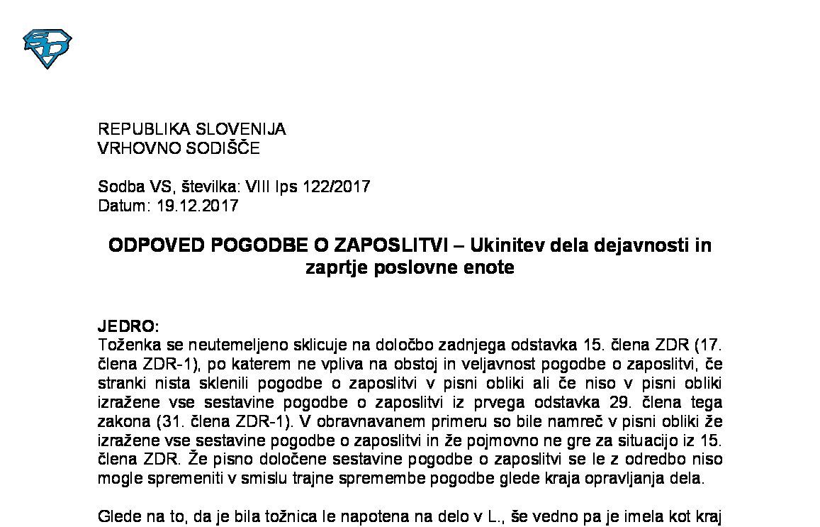 PRAVNOMOČNA SODBA IN OBSTOJ DELOVNEGA RAZMERJA – Podlaga in obseg zavarovanja (VIII Ips 26/2024) 11.04.2025 26.05.2025