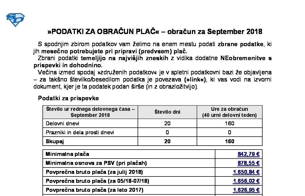PODATKI ZA OBRAČUN PLAČ – obračun za SEPTEMBER 2025 22.09.2025