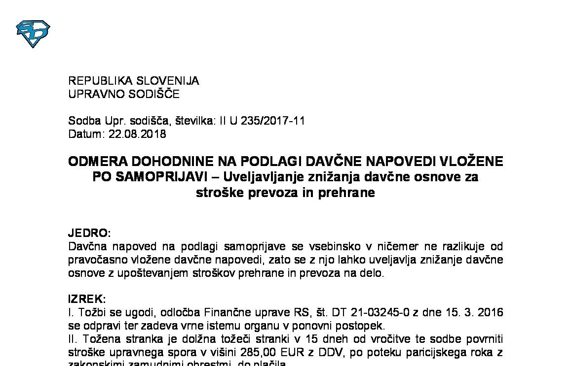 VRAČILO PLAČANIH DAJATEV PO DAVČNEM OBRAČUNU IZ POSTOPKA DIN (IV U 124/2022-15) 10.03.2025 12.09.2025