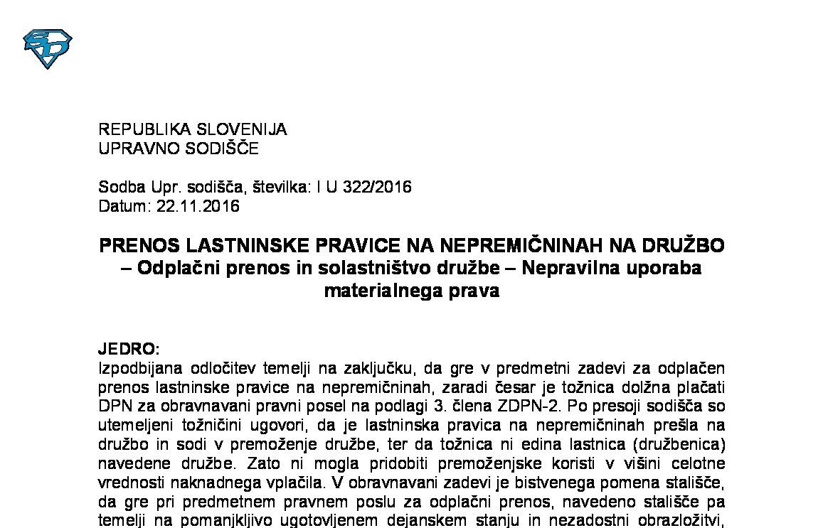 PREJEM POSLOVNEGA DELEŽA V DRUŽBI OB ANGAŽIRANJU PRI SANACIJI DRUŽBE – Darilo, ki se obdavčuje po ZDDD, ali dohodek obdavčen po ZDoh-2 (I U 1495/2022-13) 20.11.2024 10.07.2025