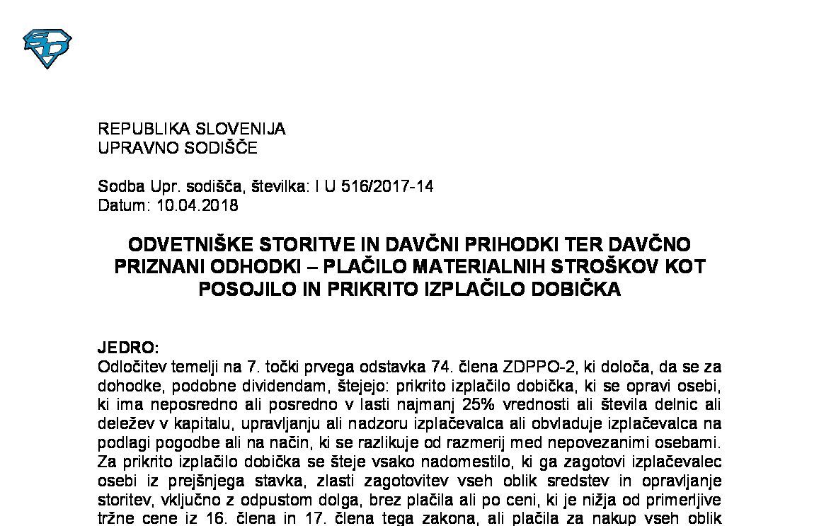 DDPO IN PREKLUZIJA DOKAZOV – Davčno priznan odhodek – Rezervacije – Prikrito izplačilo dobička (I U 652/2021-12) 15.07.2024 30.01.2025