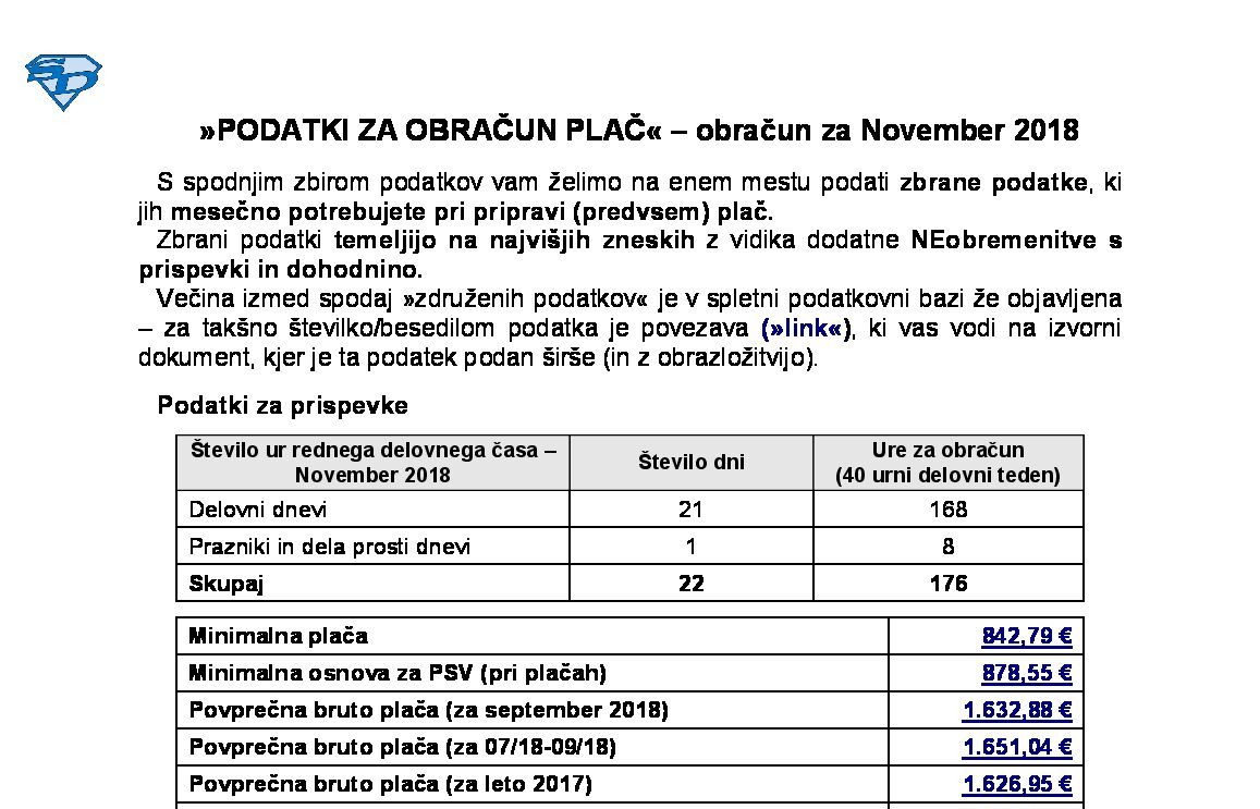 PODATKI ZA OBRAČUN PLAČ – obračun za NOVEMBER 2025 21.11.2025