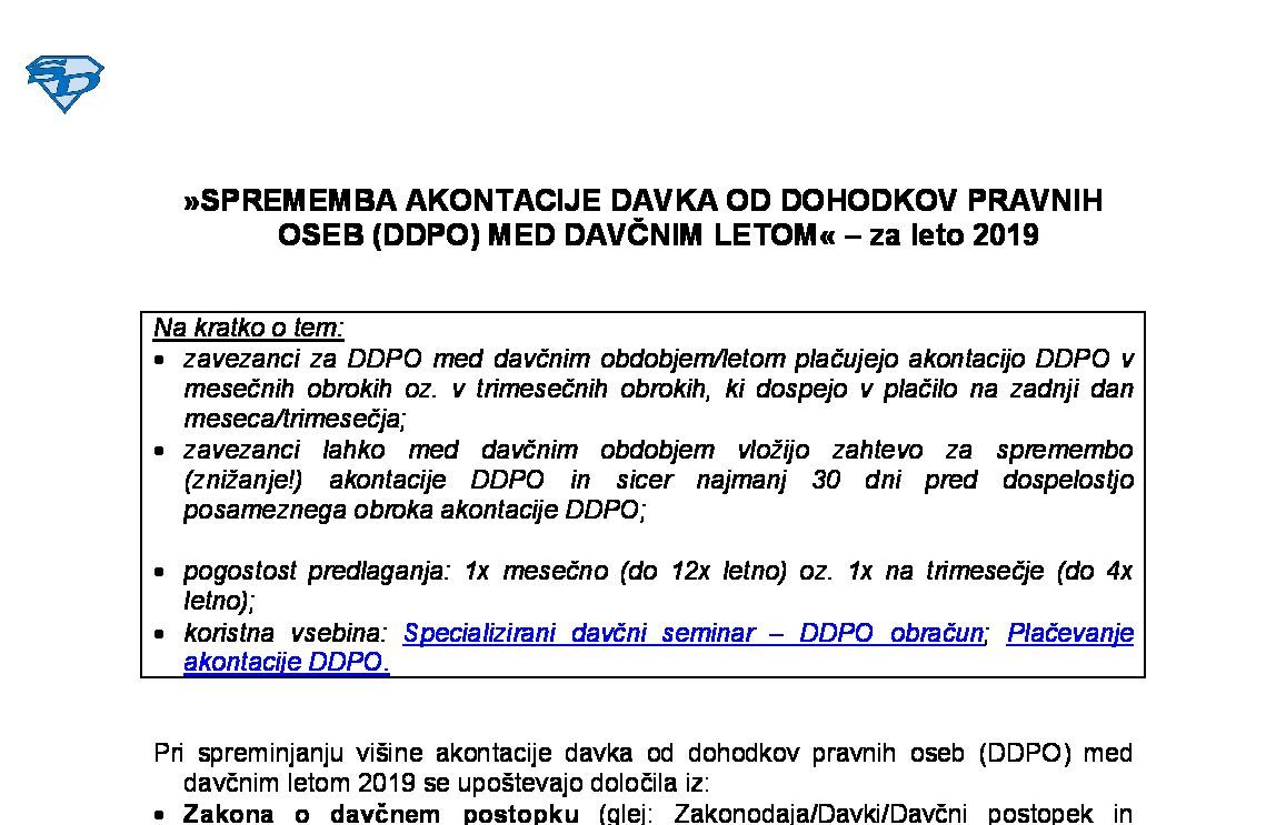 SPREMEMBA AKONTACIJE DAVKA OD DOHODKOV PRAVNIH OSEB MED DAVČNIM LETOM - za leto 2026 11.12.2025