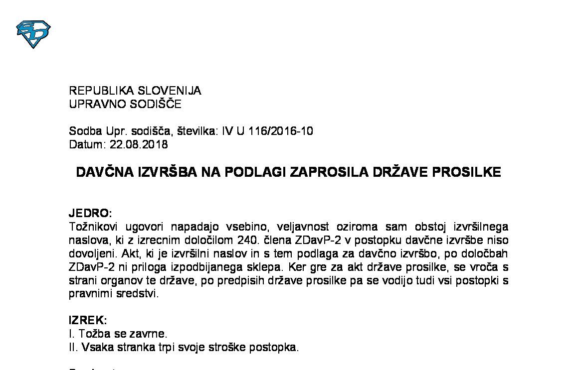 VRAČILO PLAČANIH DAJATEV PO DAVČNEM OBRAČUNU IZ POSTOPKA DIN (IV U 124/2022-15) 10.03.2025 12.09.2025