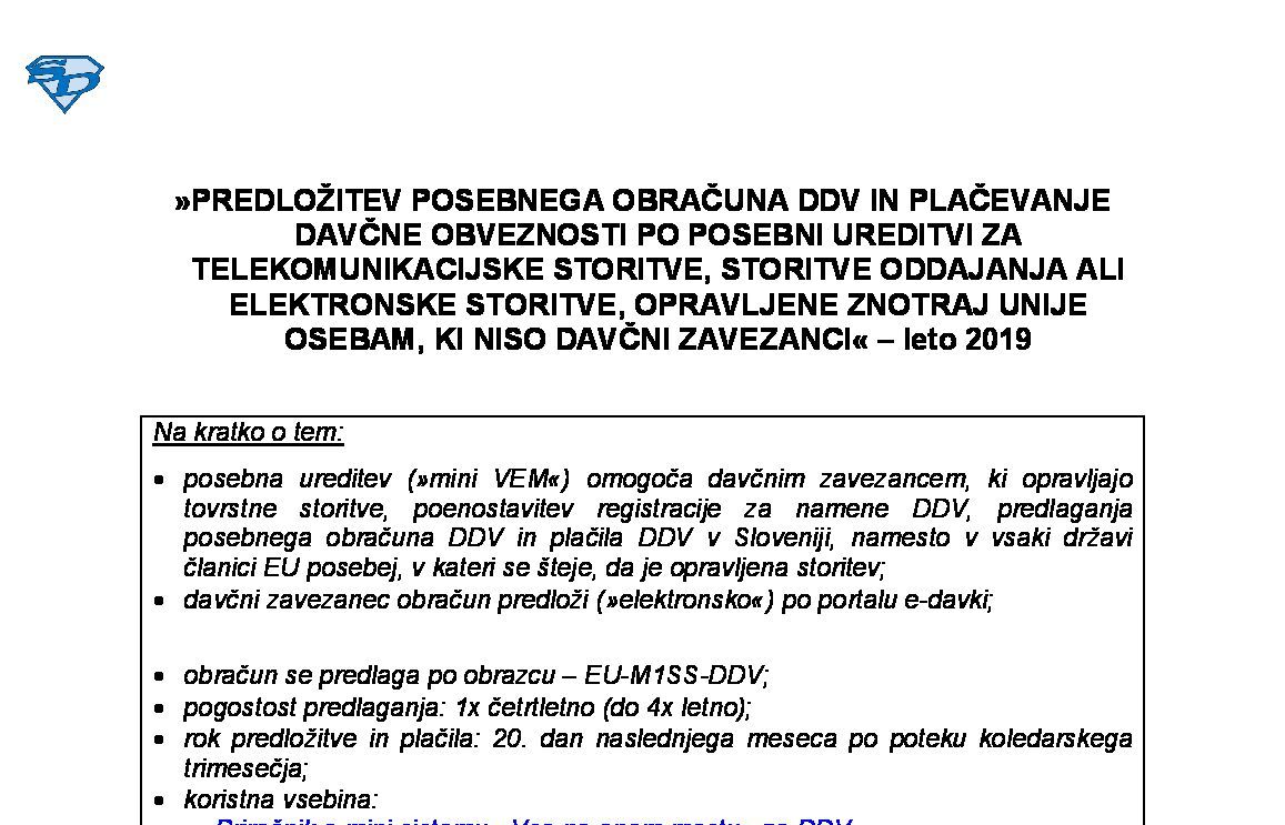 PREDLOŽITEV POSEBNEGA OBRAČUNA DDV IN PLAČEVANJE DAVČNE OBVEZNOSTI PO POSEBNI UREDITVI – UNIJSKA UREDITEV - leto 2026 17.12.2025