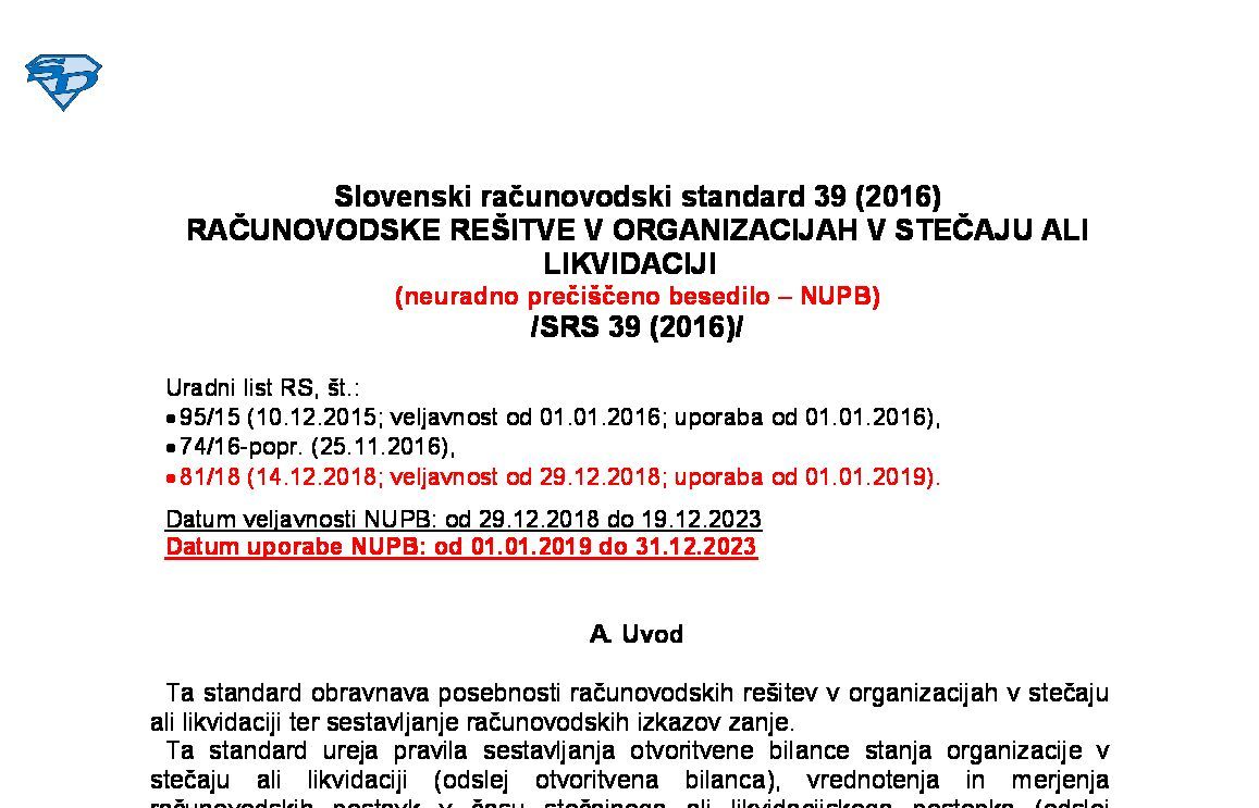 | 35. SRS 35 (2016) - Računovodske rešitve v v socialnih podjetjih (neuradno prečiščeno besedilo - NUPB) | 01.01.2019 | [!] | 31.12.2023 | 24.12.2018 |