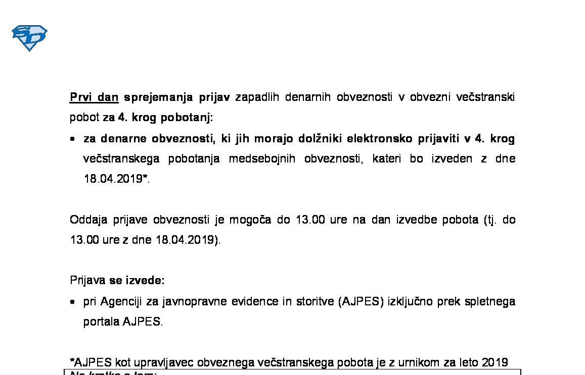 Prijava denarnih obveznosti v obvezni večstranski pobot - v letu 2026 (zadnji dan prijave v krog pobota) 2026-11-19 00:00:00