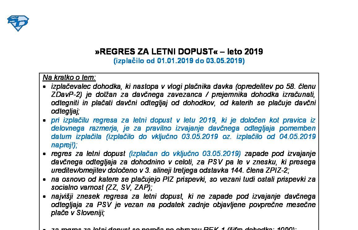 REGRES ZA LETNI DOPUST – leto 2024 27.11.2024