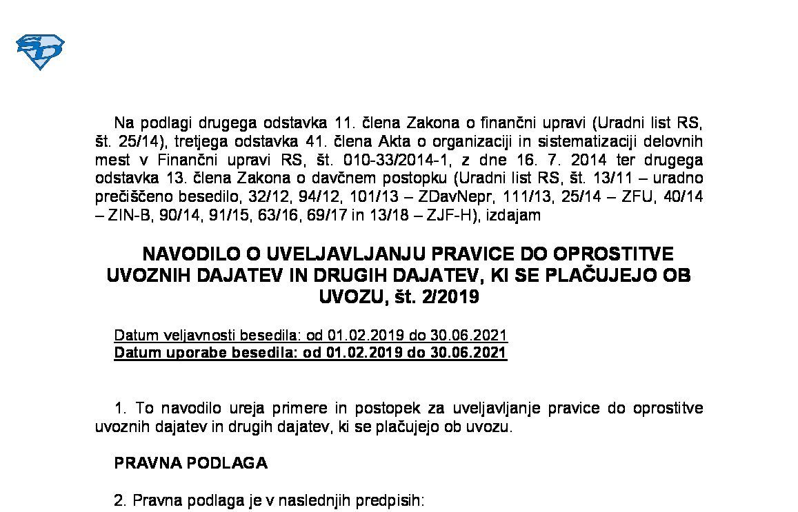 NAVODILO o formalnostih, vezanih na plačevanje uvoznega DDV, št. 13/2016 01.09.2025 28.08.2025