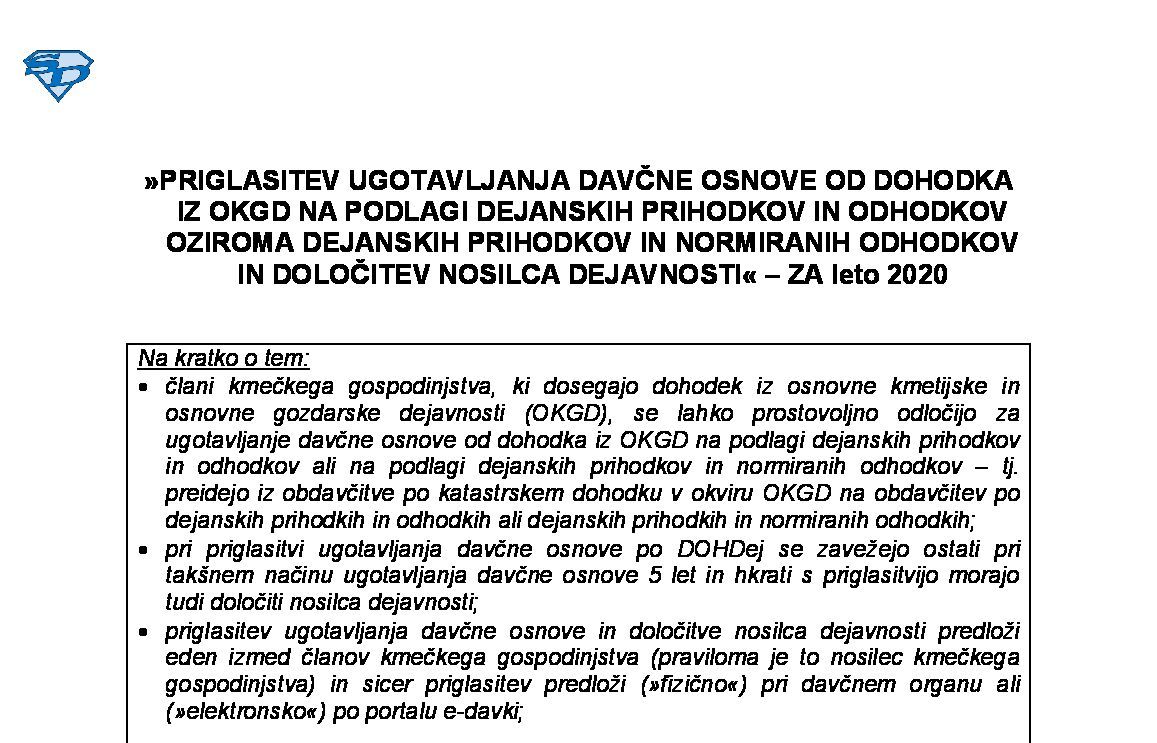 VLOGA ZA UVELJAVLJANJE POSEBNE OLAJŠAVE ZA INVESTIRANJE V OSNOVNO KMETIJSKO IN OSNOVNO GOZDARSKO DEJAVNOST - ZA leto 2025 21.01.2026
